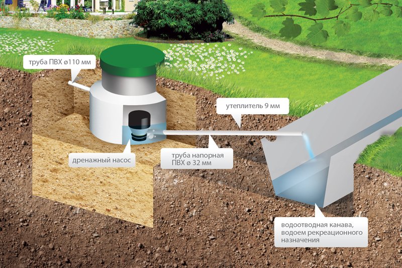 - Выпускные сооружения для отвода очищенной воды в грунт.