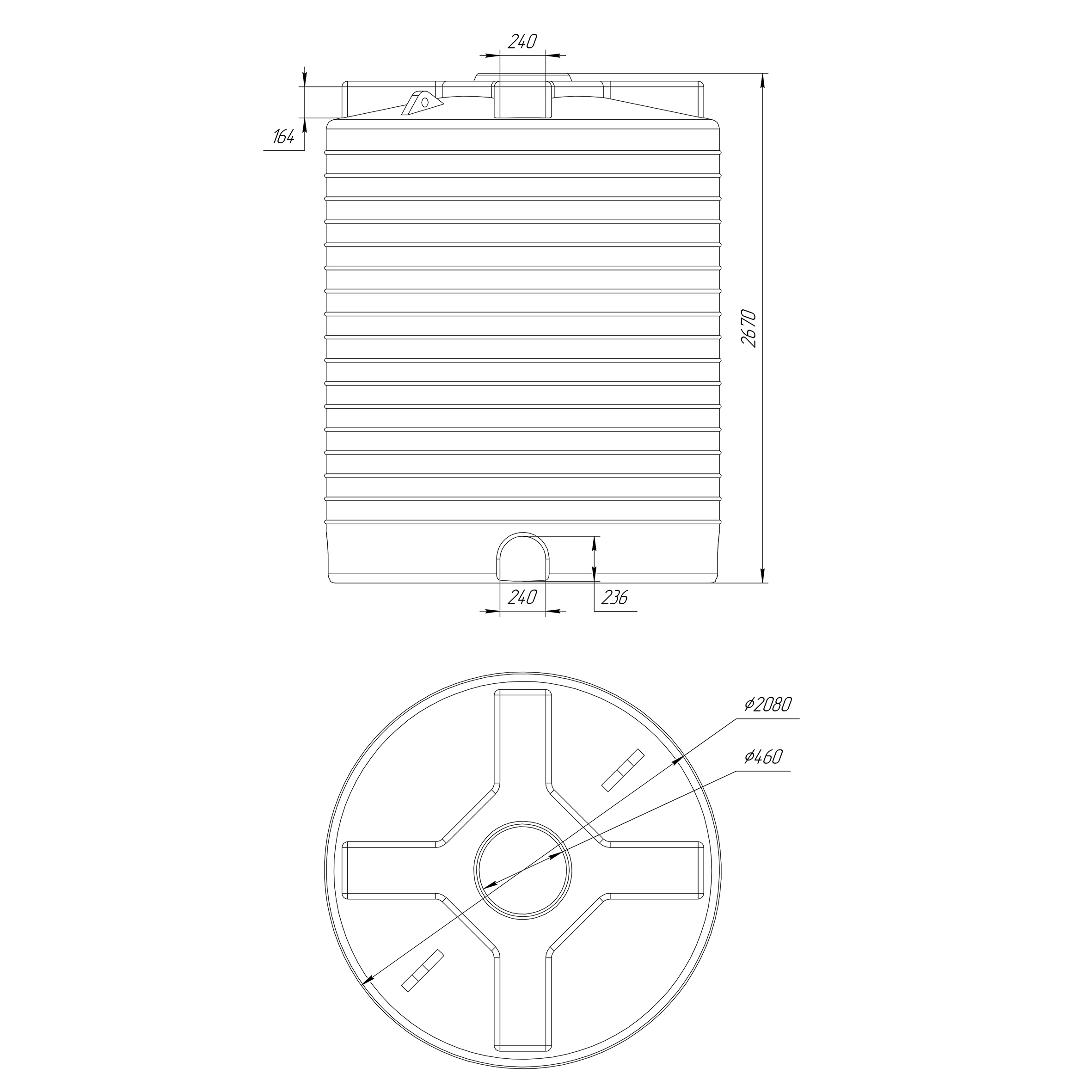 специальные проушины в верхней части для погрузочно-разгрузочных работ пустой емкости
