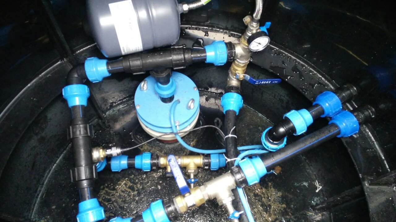 Для подключения напорных водопроводных труб мы не используем силиконовые или резиновые «уплотнители», мы применяем современные компрессионные муфты, которые позволяют легко и просто смонтировать как ПНД, так и ПП трубы необходимого диаметра, что дает свободу при разводке труб внутри кессона.